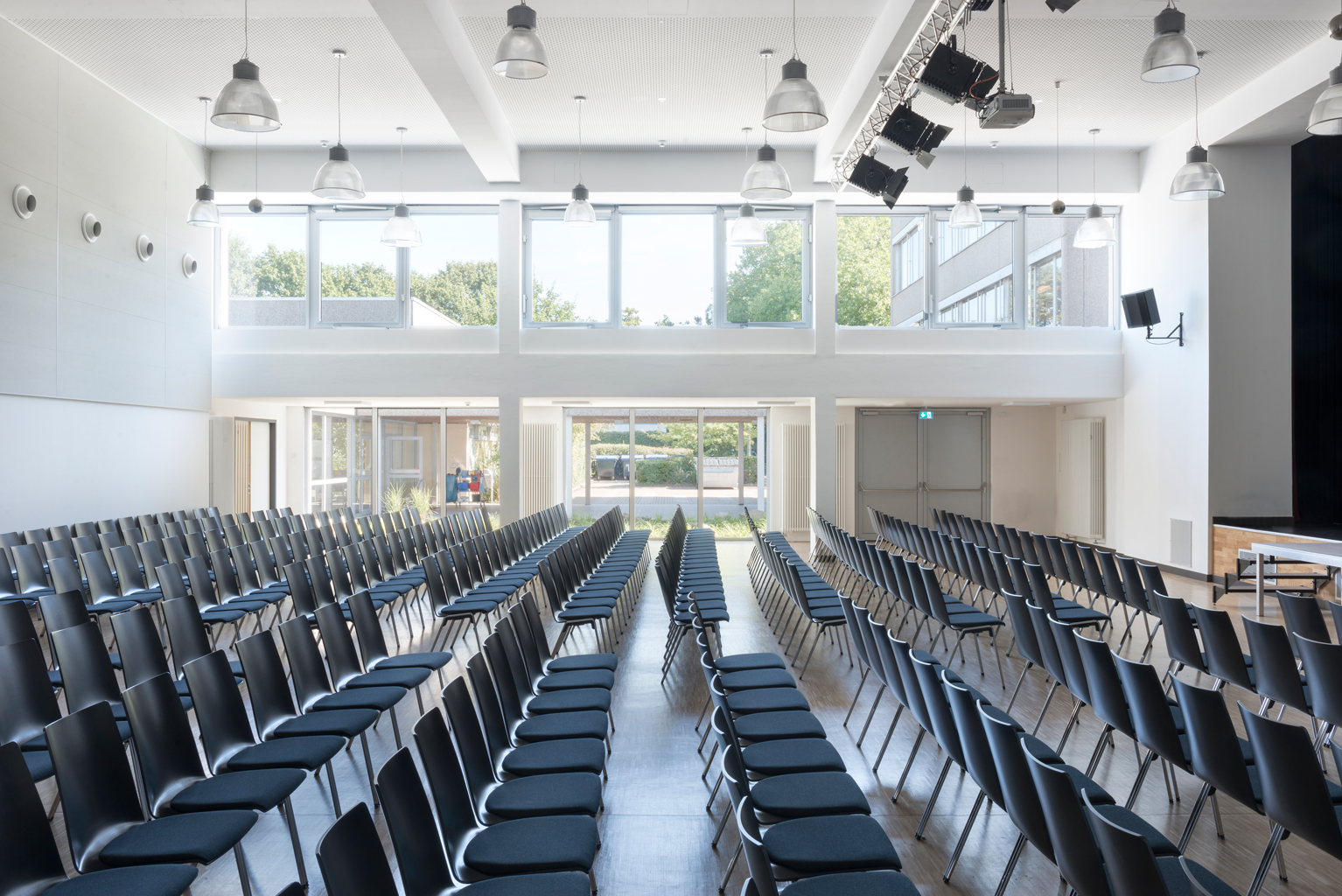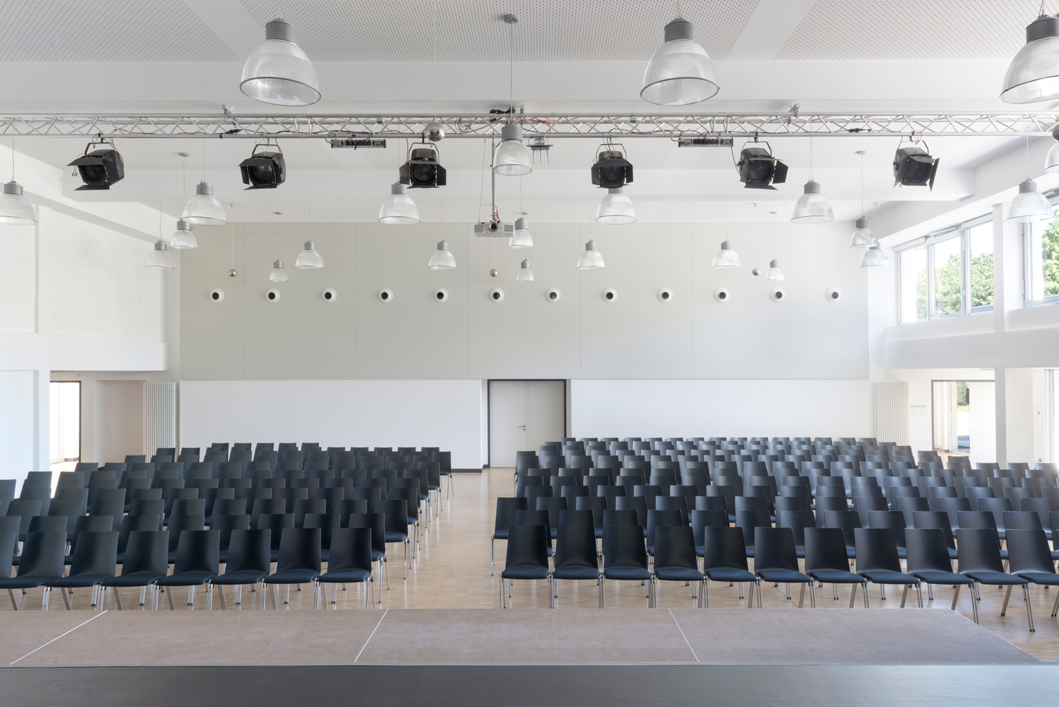 Heute verfügt das Gymnasium über eine moderne Aula mit bis 374 Sitzplätzen.
