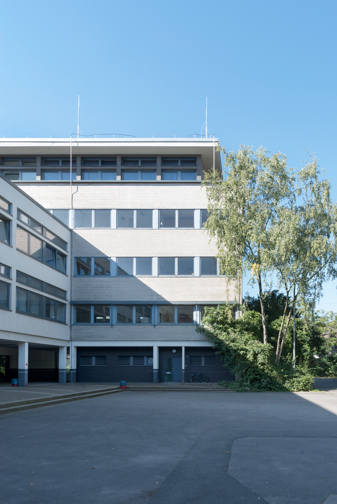 Die Kupfer-Eindeckung des in zeittypischer Bauweise als Stahlbeton Faltwerk errichteten Daches der Aula war undicht und marode, die Fassadenkonstruktion technisch verbraucht und energietechnisch nicht mehr vertretbar. Die Innenausstattung hatte nach 40 Jahren ihre planmäßige Nutzungsdauer weit überschritten.