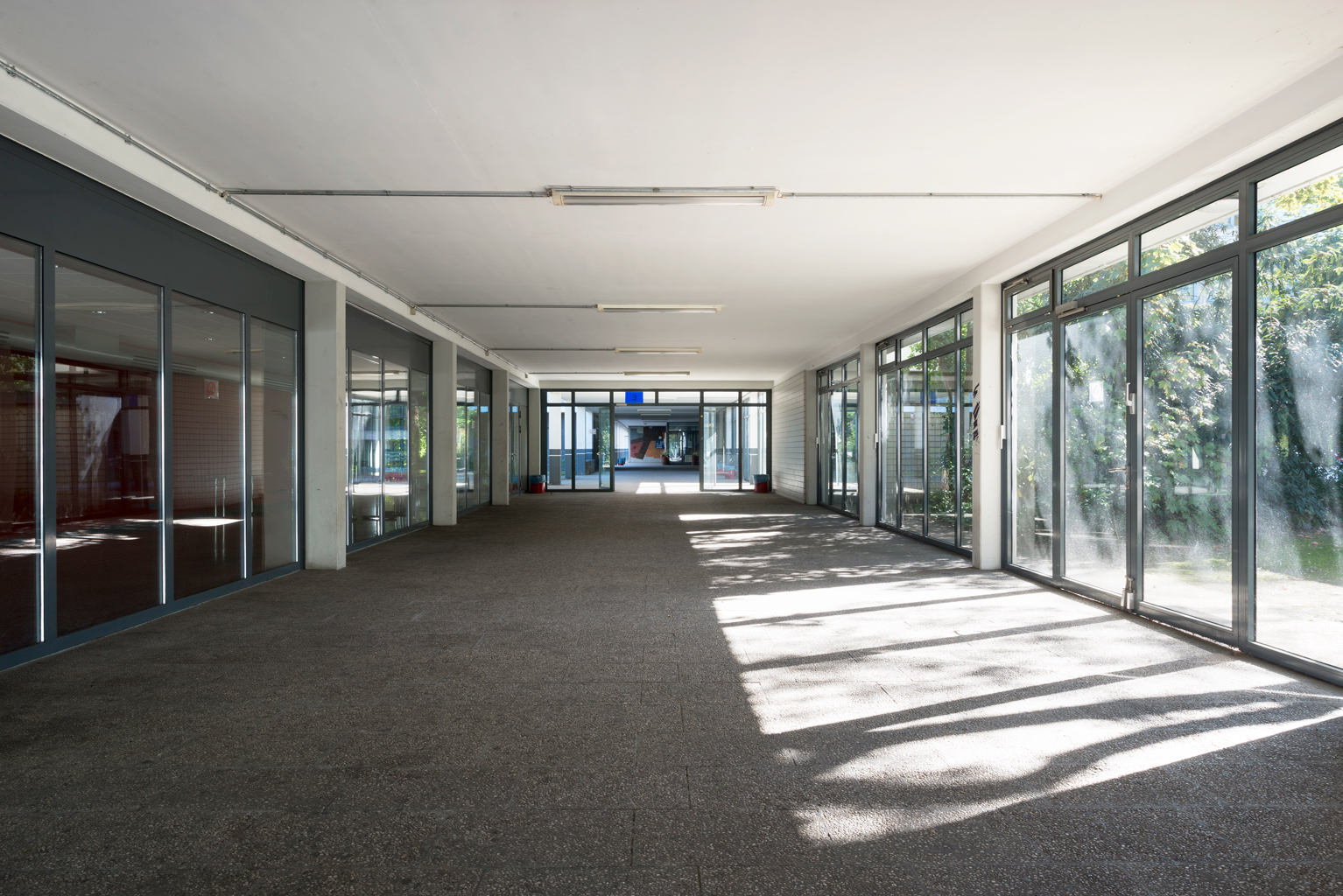 In den Bauteilen A, B und C sollte lediglich eine Brandschutzsanierung durchgeführt werden. Die Substanzuntersuchung in Vorbereitung dieser Maßnahme hat jedoch ergeben, dass die komplette technische Infrastruktur marode war. Neben den technischen Mängeln insbesondere auch im Bereich der Großküche wurde seitens der Schulleitung über ein deutliches Flächendefizit geklagt. Da eine Gebäudeerweiterung keinesfalls in möglich war, haben wir untersucht, in welchen Bereichen nicht genutzte oder nur unzureichend genutzte Flächen zur Verfügung standen. Ähnlich der Zielplanungen im Gesundheitswesen haben wir mit Erstellung eines Anforderungsprofils mit detailliertem Raumprogramm eine erste Funktionsplanung erstellt, auf deren Basis dann die Optimierung des Objektes erfolgte. Unter Einbeziehung unnötiger Verkehrsflächen ist es so gelungen die Defizite zu beheben und die erforderliche Freiräume für die bauliche Umsetzung zu schaffen. In allen Bereichen wurden hier neue Wege beschritten. So verfügt die Schule heute über einen zentralen Infopunkt als Anlaufstelle für alle Schüler und Besucher. Nach der sukzessiven Inbetriebnahme der Aula, Bauteil B und C wurde der letzte Abschnitt im Herbst 2007 in Betrieb genommen.