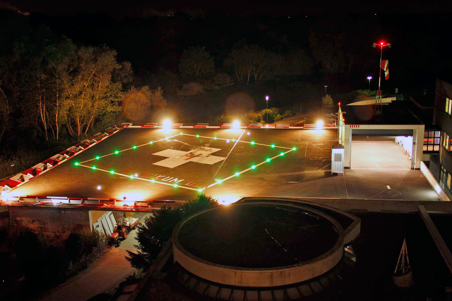 In den 1970er Jahren wurde das Klinikum Duisburg errichtet. Im Zuge dieser Maßnahme wurde auch der Hubschrauberlandeplatz gebaut. Im Rahmen der damaligen Genehmigungsverfahren wurde es jedoch versäumt, die Pugrechtliche Genehmigung und Abnahmen zu erwirken. Unserem Büro wurde die Aufgabe gestellt auf Basis einer, vom Bauherren mit einem Sachverständigen für Heliports erstellten Vorplanung, den vorhandenen Landeplatz an die heutigen Bestimmungen anzupassen.