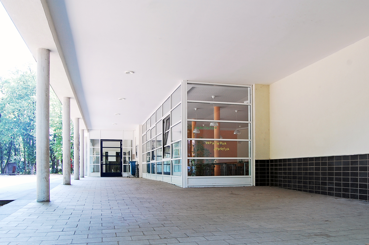 An der Stelle des alten eingeschossigen Verwaltungsteils entsteht nun ein zweigeschossiger Baukörper, der neben den Räumen für die offene Ganztagsschule mit Küche und Speiseraum auch Die Verwaltung beherbergen wird. Die Einbindung dieses Neubauteils in das alte zusammen gewürfelte Ensamble stellte erhöhte Anforderungen. So galt es die neuen Funktionen ebenso wie die behindertengerechte Ausbildung des Objektes mit der räumlichen Gestaltung in Einklang zu bringen.